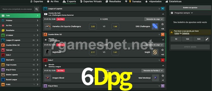 O 6Dpg oferece uma grande seleção de opções de apostas em e-sports com probabilidades competitivas